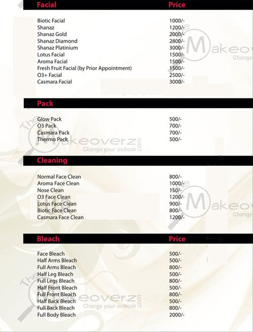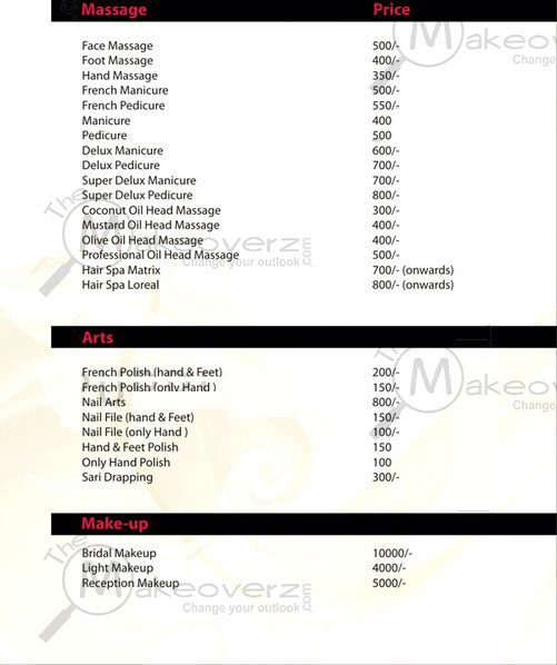 Rates may have changed since the last time the website was updated. Themakeoverz.com does not guarantee prices given in the Rate List